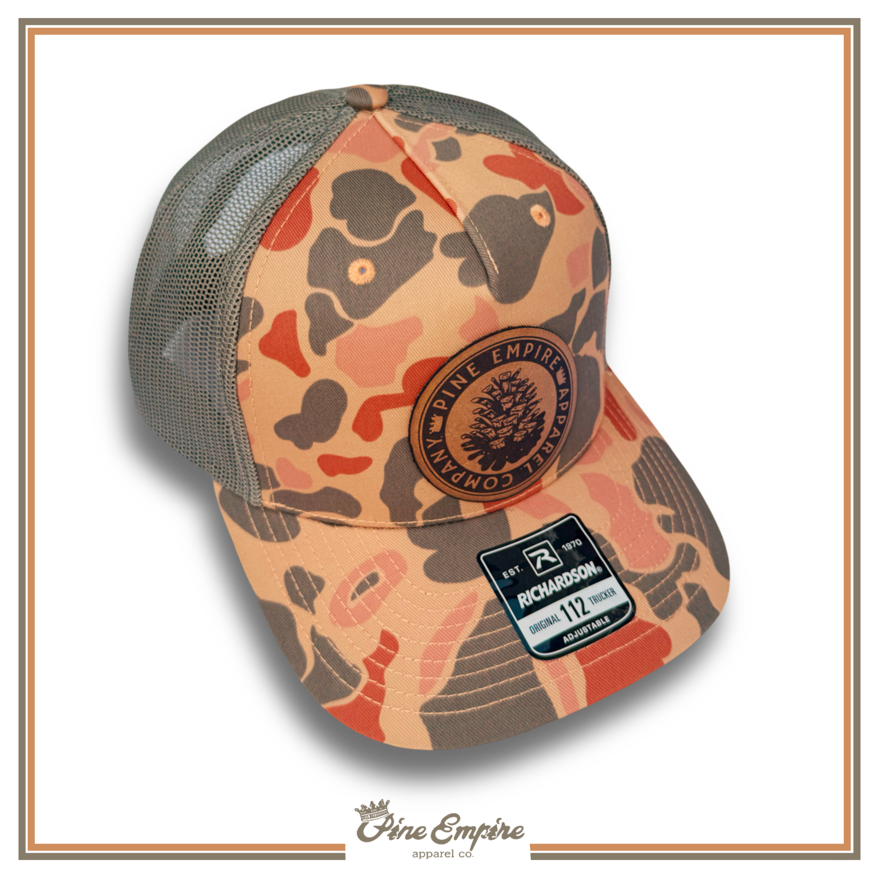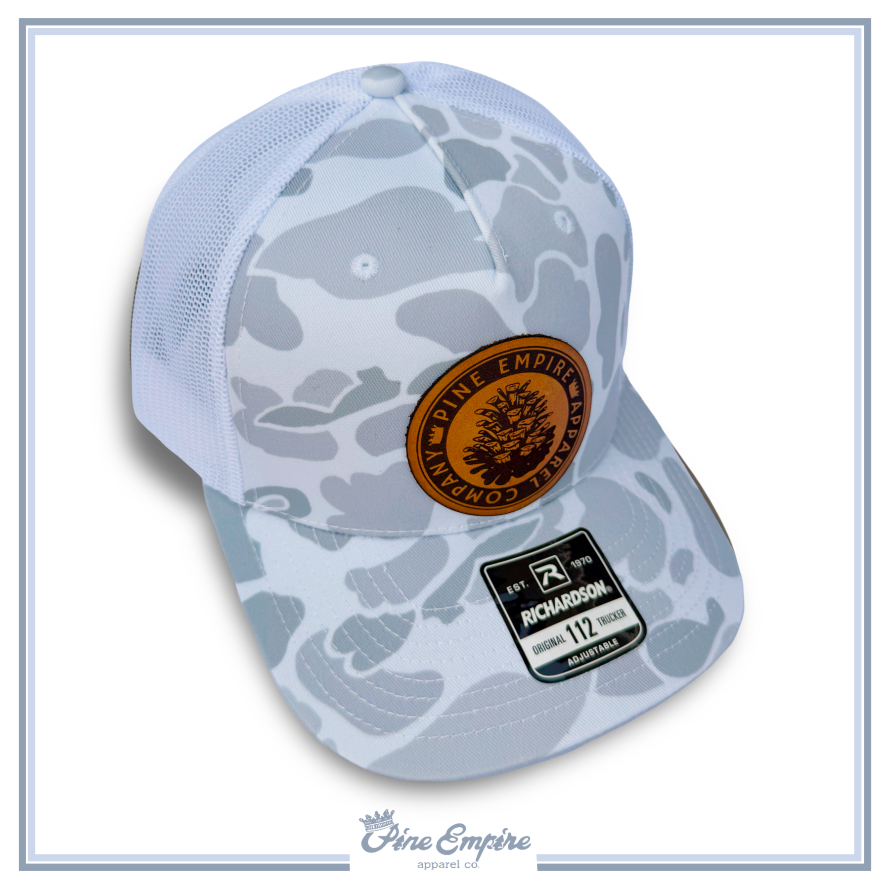 Our pine cone coin logo is here, as a leather patch, and on a Richardson 112 snapback. Everyone loves the pine cone!
