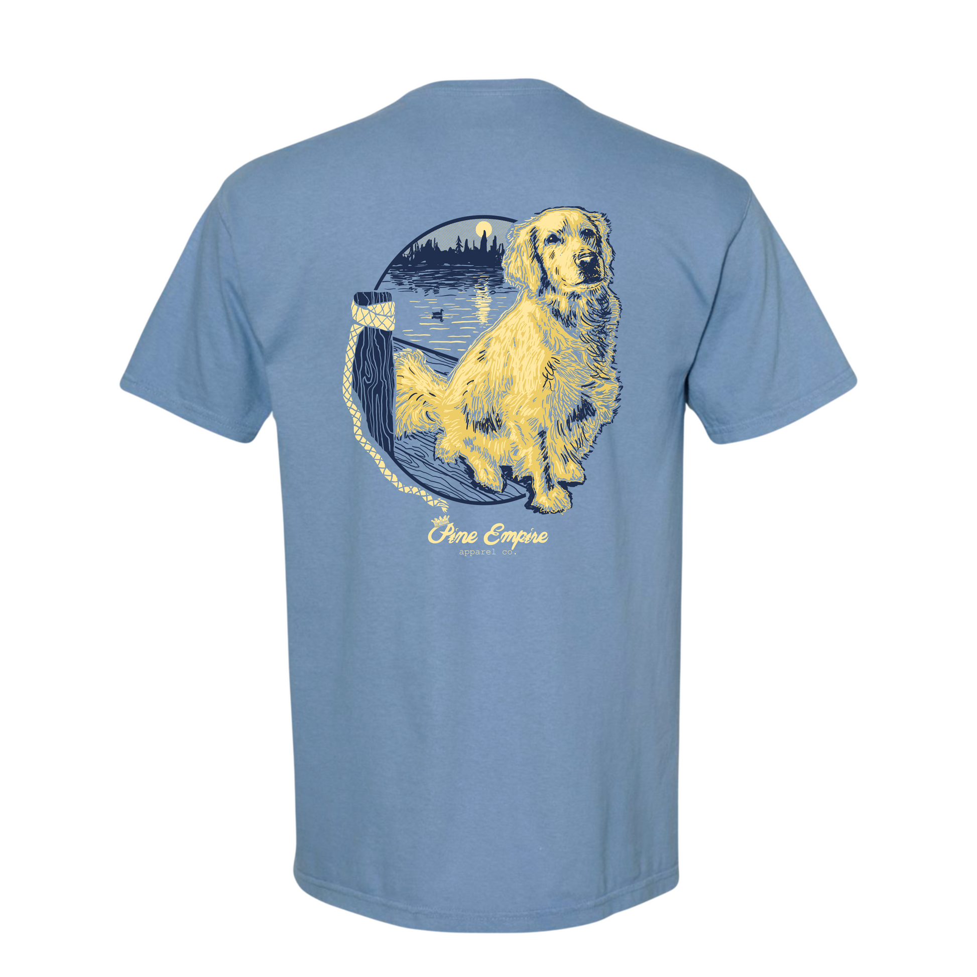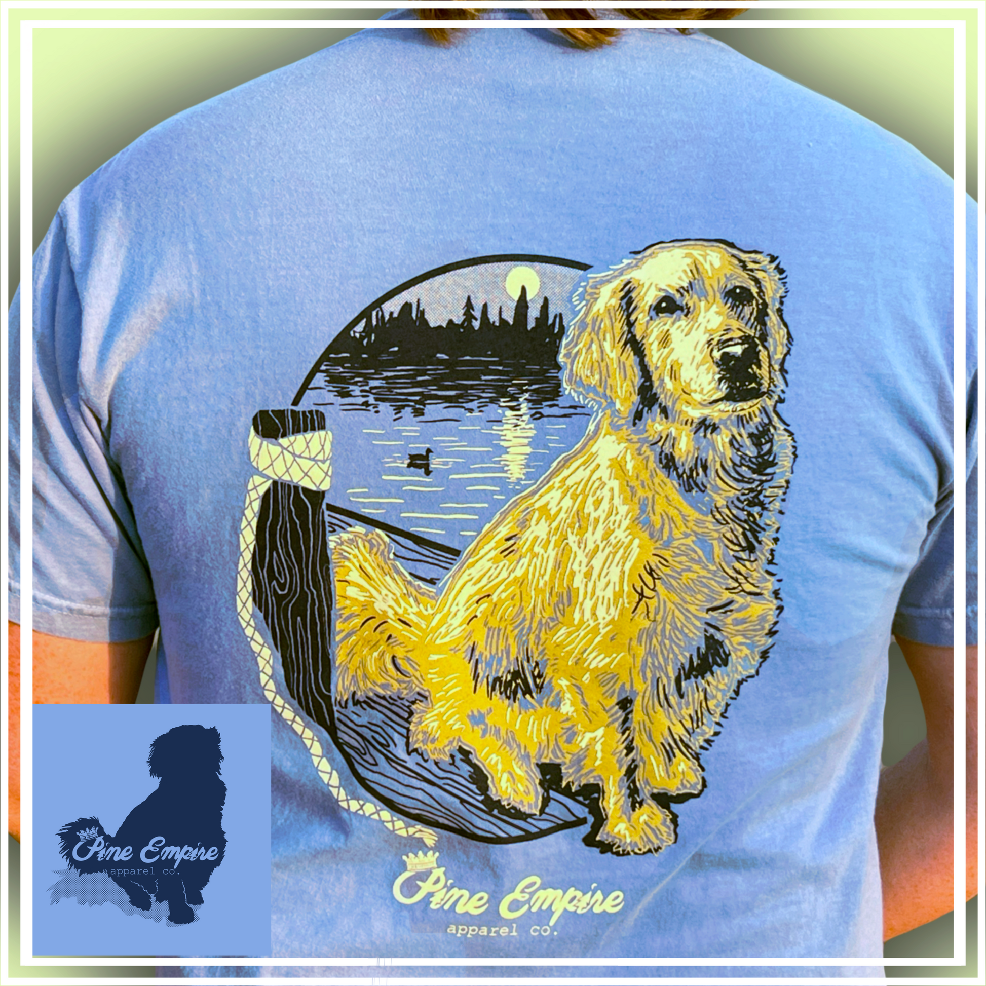 “Docked” is our second design honoring one of our Golden Retrievers, Marley. She's such a sweetheart that we just had to let her hang out at the lake on this one. And yes, she looks exactly like the design!