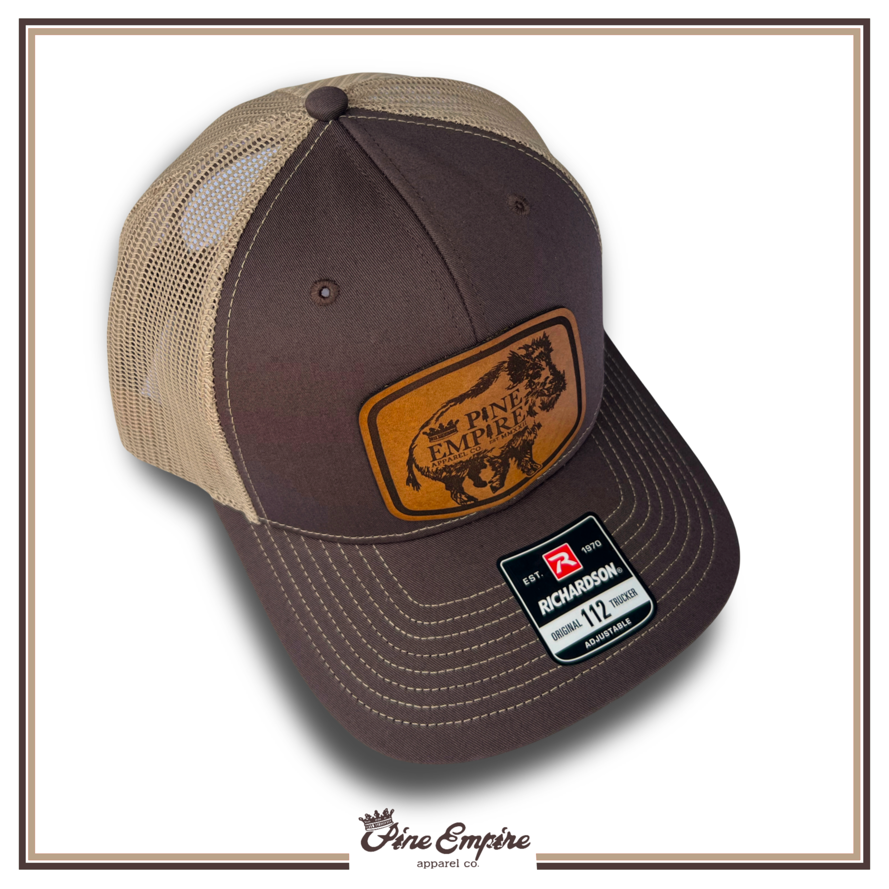 We took the boar from our “Hog Heaven” shirt, put him on a leather patch, and placed it on a Richardson 112 snapback. Sooie!