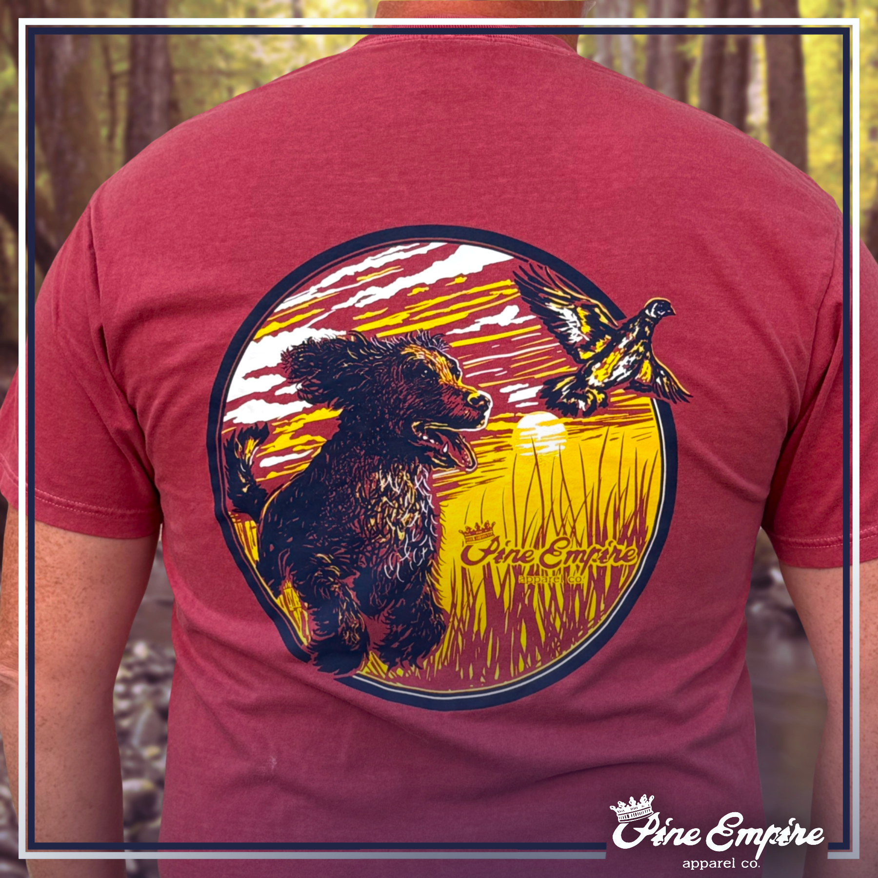 Our first Boykin Spaniel design, “Lucy’s Lunge”, highlights the early morning quail hunt.
