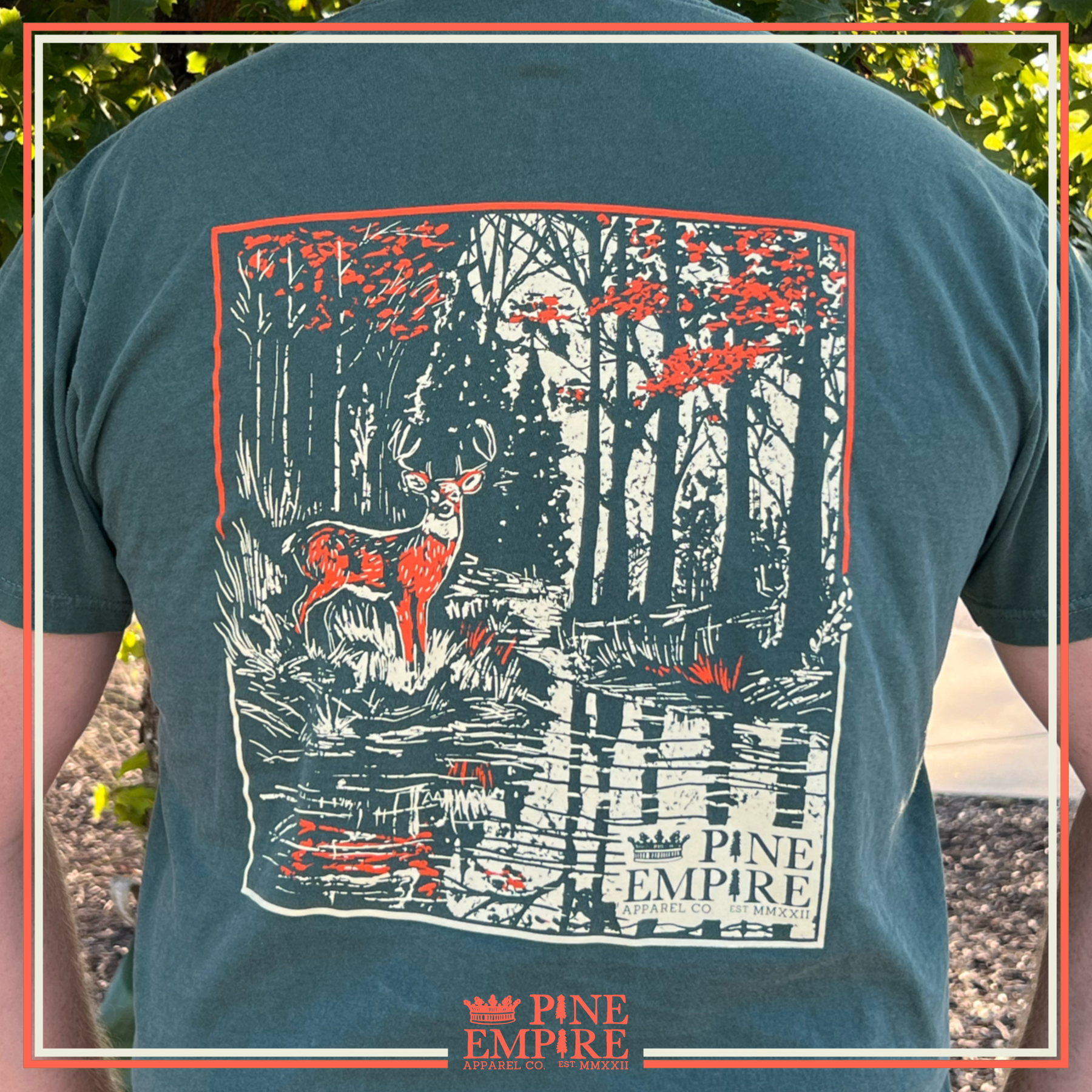 “Stag & Stream” is a nod to the covers of the old hunting magazines your grandpa or dad subscribed to. Can you think of anything more picturesque than a majestic buck standing as still by a stream in the middle of autumn?